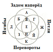 Эти четыре круга показывают горку, которая делает петли, изгибается, переворачивается, а ещё по ней можно ехать задом наперёд. Какой буквой обозначены горки, которые изгибаются, делают петли и переворачиваются, но на них нельзя ехать задом наперёд?