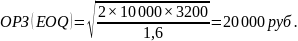 Оптимальный средний размер запаса данного вида товара будет равен 10 000 руб. (20 000 : 2 ).