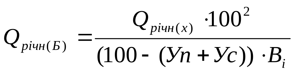 Потрібну кількість борошна для забезпечення запланованої річної програми виробництва хліба визначають за формулою: