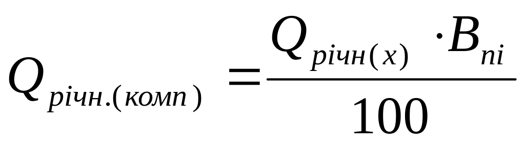 Річну потребу у додаткових компонентах (дріжді, цукор, сіль, вода) визначають за формулою:
