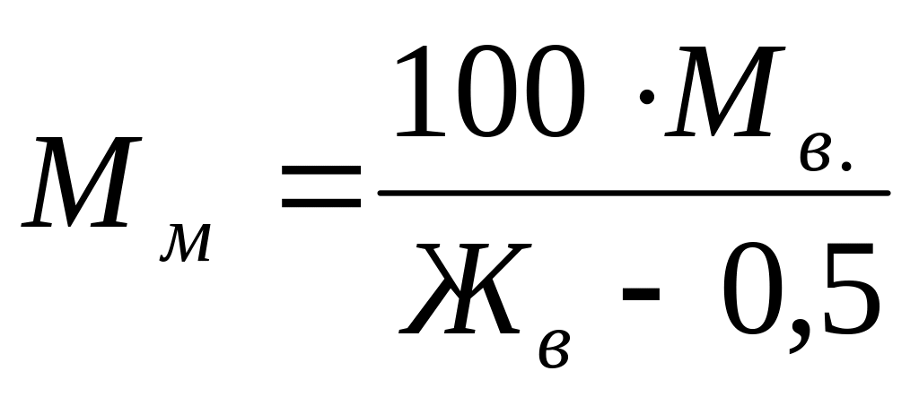 При нормалізації в потоці за допомогою сепаратора – нормалізатора потрібну кількість незбираного молока для виробництва рідких кисломолочних напоїв (кефір, ряженка) визначають за формулою: