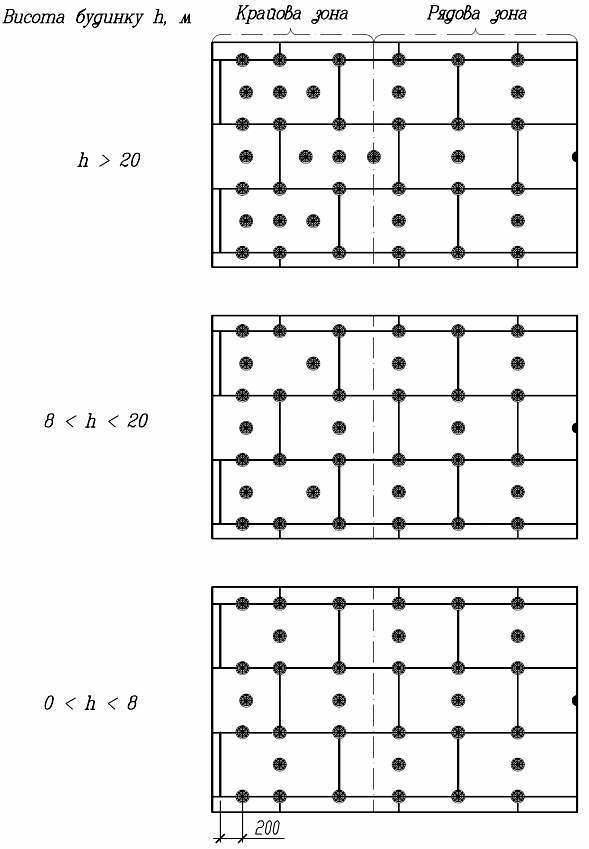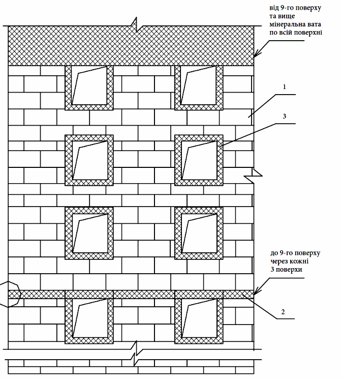 Рис. 5. Схема розміщення плит утеплювача та протипожежних розсішок в будинку до 25 поверхів включно