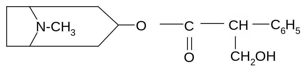 Тропин, этерифицируясь троповой кислотой, образует алкалоид гиосциамин. Природный гиосциамин — левовращающий;