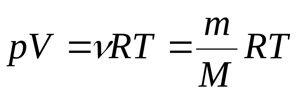 где p – давление газа; V – объём сосуда; ν – количество вещества; m – масса газа; M – молярная масса газа (например, для водорода M = 2,016 г/моль, для азота M = 28 г/моль, для кислорода M = 32 г/моль); T – температура газа; R ≈ 8,31 Дж/(моль·К) – молярная газовая постоянная.