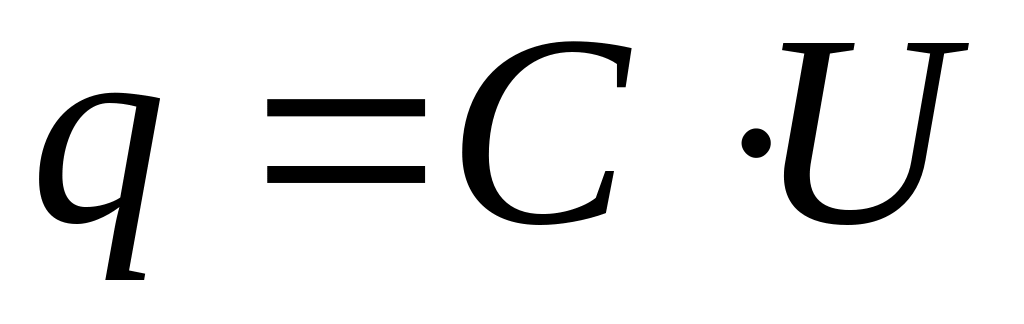 Заряд на обкладках конденсатора q связан с напряжением между обкладками U следующим соотношением: