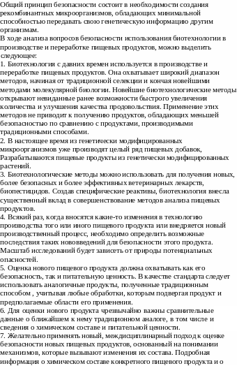 В ходе анализа вопросов безопасности использования биотехнологии в