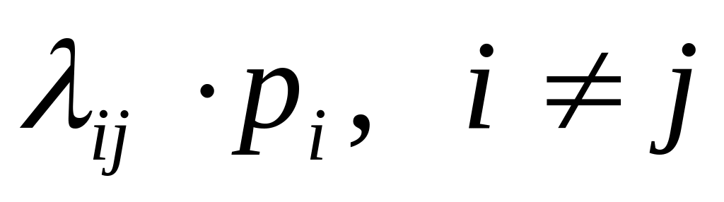 Для анализа однородных марковских процессов удобно пользоваться размеченным графом состояний – геометрической схемой, где прямоугольниками изображаются возможные состояния системы, стрелками – возможные переходы из состояния в состояние, против каждой стрелки, ведущей из состояния в состояние, ставится интенсивность вероятности ,соответствующей стрелке перехода (рис.2.1).