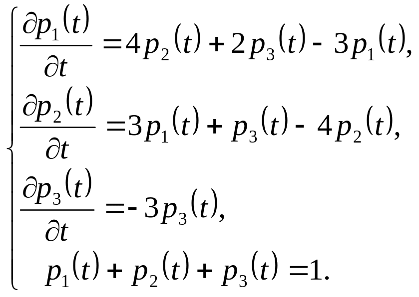 Положив нулю производные вероятностей состояний (в системе существует предельный стационарный режим, при этом t=const):