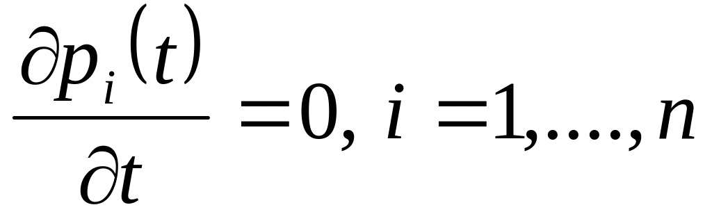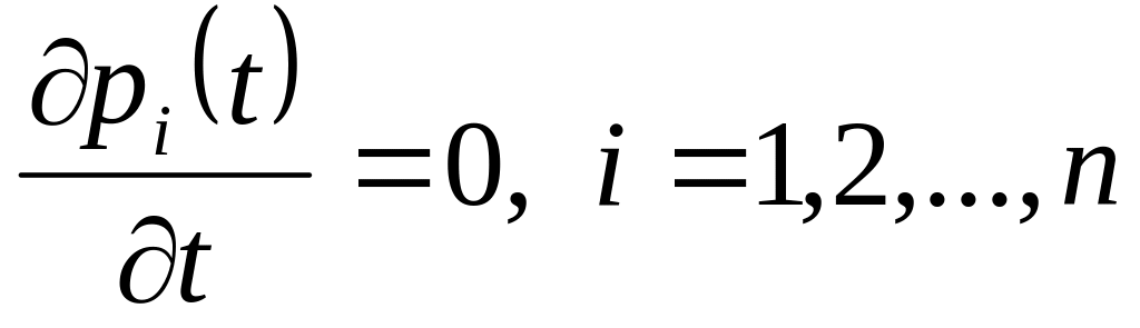 независящие от того, в каком состоянии система находилась в начальный момент времени, то это означает, что с течением времени в системе устанавливается предельный стационарный режим (t = const).