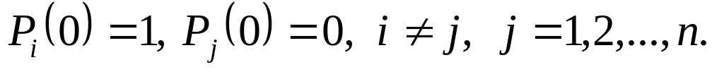 Если в начальный момент времени система находилась в состоянии , то систему уравнений Колмогорова следует решать при начальных условиях: