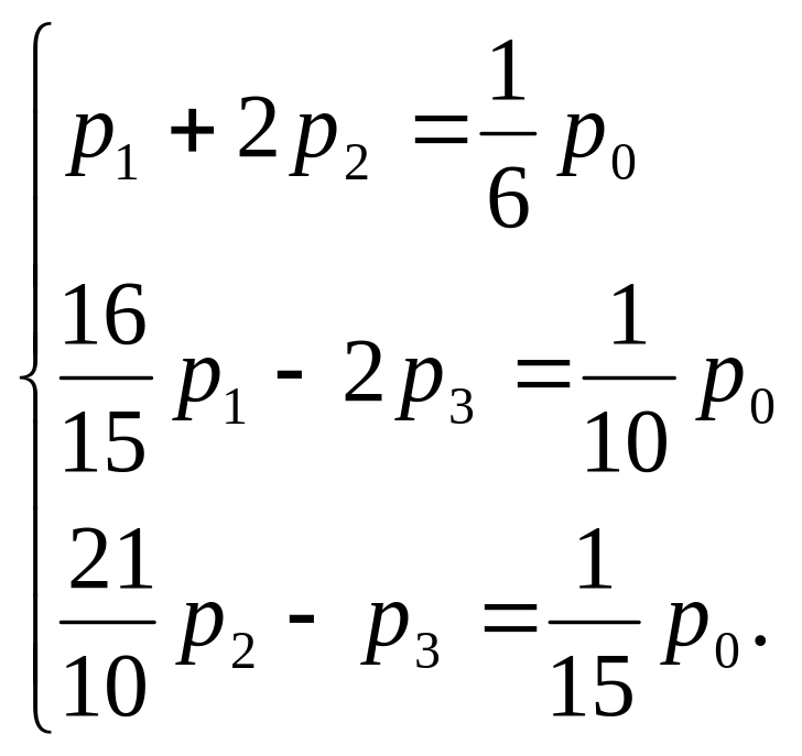 Все состояния системы существенные, сообщающиеся. Следовательно, предельные вероятности состояний существуют. Для предельных вероятностей состояний имеем систему линейных однородных алгебраических уравнений