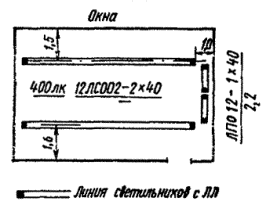 Рис. 2.10. Схема размещения светильников в кабинете черчения и рисования
