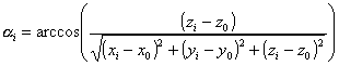 1.4.3. Значения силы света Ii(a) определяются исходя из паспортных данных светильника (таблицы, графики, формулы), рассчитанных значений угла ai, значения которого определяются из формулы: