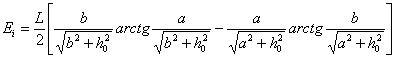 Все остальные формулы для расчета освещенности вытекают как частные случаи из выражений (1.7.1) - (1.7.4). Так в случае расчета освещенности от светящего прямоугольника плоскость которого параллельна расчетной плоскости: т = а/2; п = b/2; q = 0 и получается формула Ратнера: