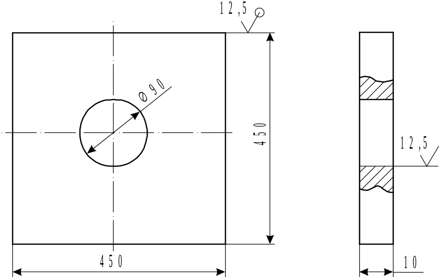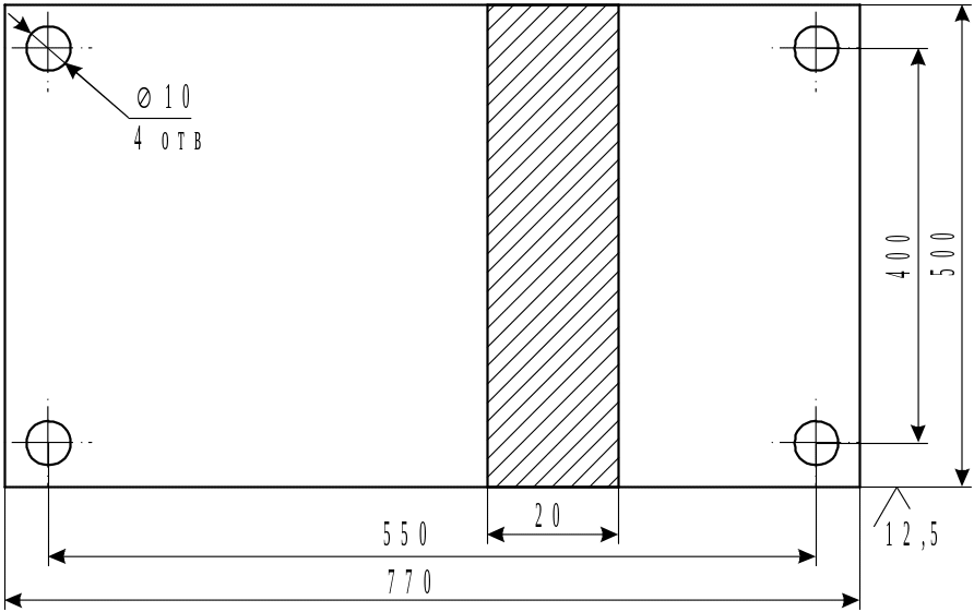 Плита нижняя, дет. 4, 1 шт., сталь см. поз. 2, рабочий чертеж – см. также поз. 2, но без отверстия.