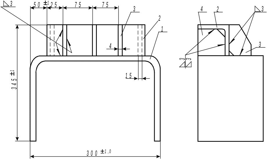 Швеллер № 20, дет. 1, 2 шт., L = 700 мм, сталь ВСт3сп, ГОСТ 380-88. Допуск на размер 700 мм установить по условиям сборки и сварки.