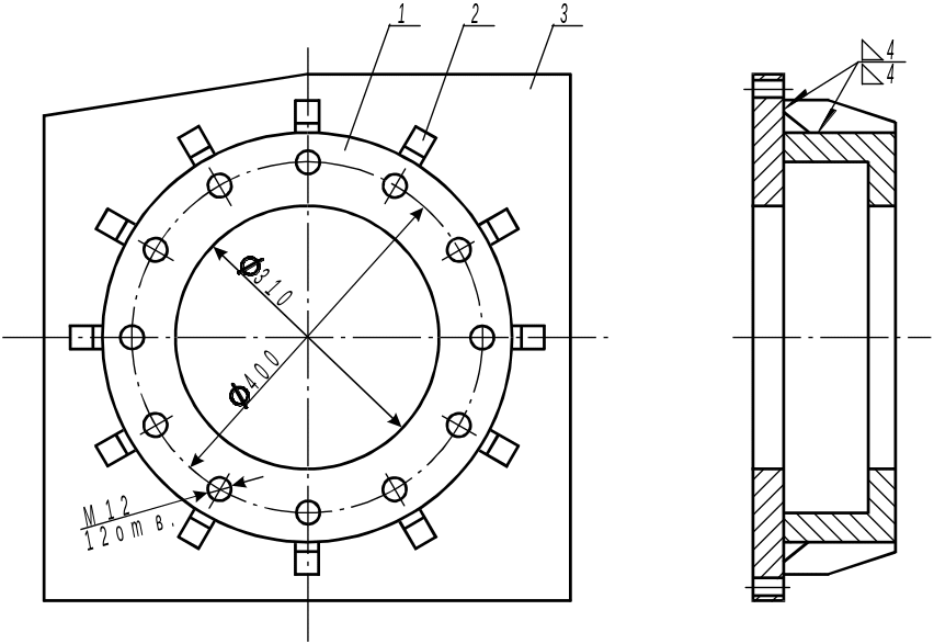 мм.Смещение осей отверстий d = 400 мм и d = 310 мм не более 0,3 мм.