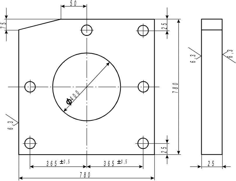 Пластинка, дет. 2, 8 шт., S = 5 мм, сталь ВСт3сп, ГОСТ 380-88.