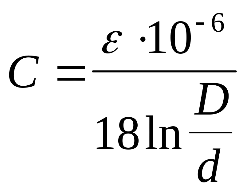 Коаксиалды тізбектің сыйымдылығы цилиндрлік конденсатордың сыйымдылығы сияқты анықталады: