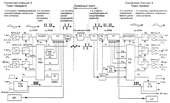 Рис. 2. Принцип построения систем передачи с ИКМ