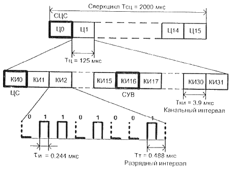 Т.к. в нулевом цикле Цо передаются сигналы сверхцикловой синхронизации (СЦС) а СУВ не передаются, число циклов в сверхцикле на один больше, чем требуется для передачи СУВ всех каналов.