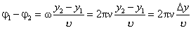 Найкоротша відстань між точками хвилі, які коливаються в однакових фазах, називають довжиною хвилі . Довжина хвилі дорівнює відстані, яку пробігає хвиля за один період. Довжині хвилі відповідає відстань між найближчими точками із зсувом фаз 1 – 2 = 2 (рис.5.1.10). Тому y2 – y1 = .