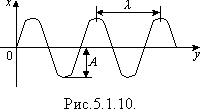 Графік коливань показує, як змінюється координата однією точки, що коливається, з часом. У хвилі коливаються всі точки, що її утворюють. Тому графік хвилі показує, як залежить координата всіх точок хвилі від їх положення у хвилі (рис.5.1.10).