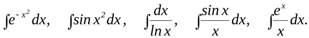 Интегралы от некоторых элементарных функций не являются элементарными функциями, например:
