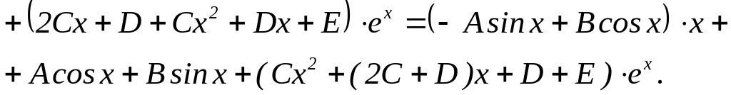 Найдем частное решение неоднородного уравнения. Заметим, что правая часть уравнения – сумма двух слагаемых, каждое из которых может быть представлено в виде (25). Поэтому, в соответствии с принципом суперпозиции решений, частное решение неоднородного уравнения будем искать в виде: