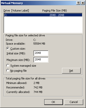 Лучше всего задать фиксированный размер файла подкачки, поскольку при изменении размера он может быть фрагментирован. На той же закладке Advanced выберите клавишу "Performance", "Settings".