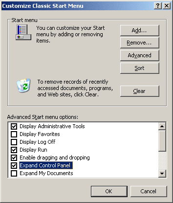 Затем необходимо настроить меню (нажав клавишу "Customize"), чтобы автоматически открывать сетевые соединения и опции панели управления. Мы пропустим персональные настройки меню, поскольку на сервере они будут, скорее, недостатком.