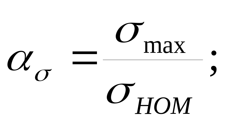 где σmax , σнom , τmax , τном – соответственно: наибольшие и номинальные нормальные и касательные напряжения в зоне концентратора.