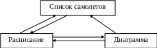 «Расписание» - для самолетов идет расписание движения с полями, Номер самолета, Направление, Время отправления, Время прибытия, Количество проданных билетов.