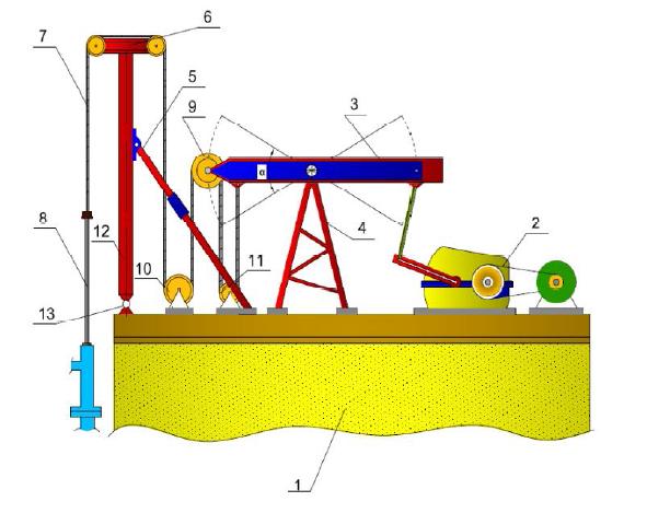 Жетілдірудің мәнісі типтік тербелмелі станоктарды штоктың жүріс ұзындығын екі және одан көп есе арттыруға мүмкіндік беретін полиспастты қосымшасы бар біртума мачтамен жабдықтаудан тұрады.