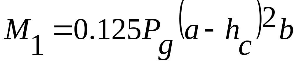 Определение изгибающих моментов: М1=0,125Pg(a-hc)2b, кНм М2=0,125Pg(a-a2)2b, кНм М3=0,125Pg(a-a1)2b, кНм |