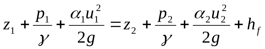Подставив полученные выражения, в исходное уравнение (3.2.1) и разделив все слагаемые на весовой расход , получим искомое уравнение Бернулли: