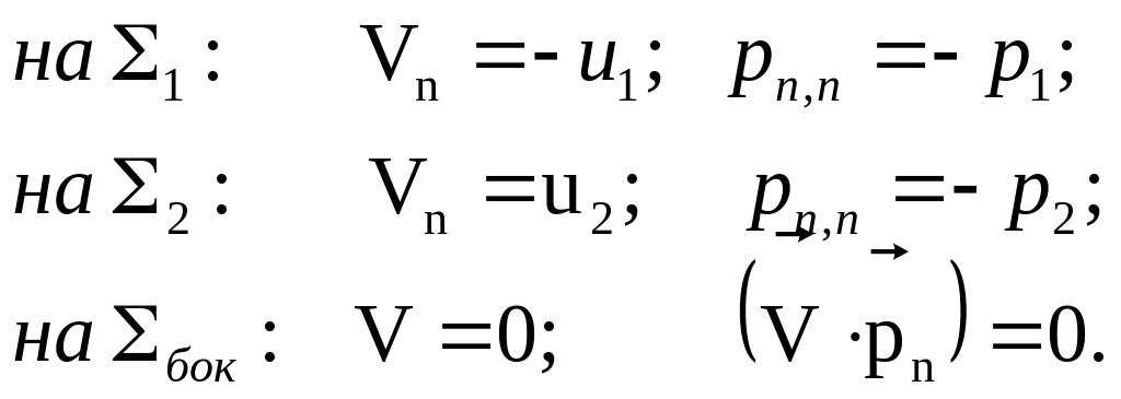 Рассмотрим граничные условия на , учитывая одномерность потока во входном и выходном сечениях: