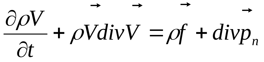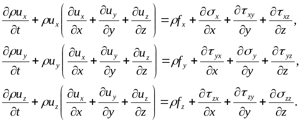 Учитывая, что объем – произволен, получим векторное уравнение в частных производных – дифференциальную форму записи закона сохранения импульса, которую принято называть уравнениями движения сплошной среды в напряжениях: