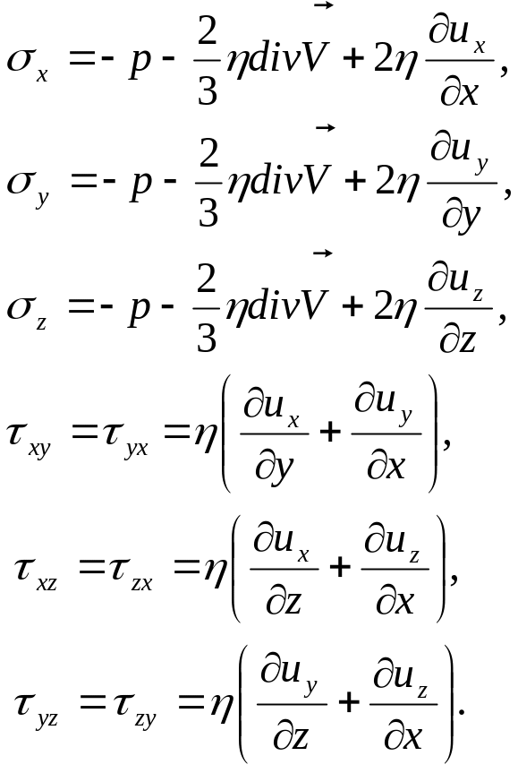 Компоненты тензора напряжений для случая ньтоновской жидкости (1.5.23):