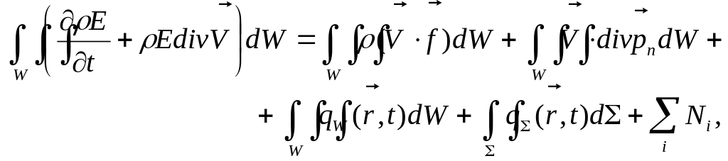 Складывая (1.6.13) и (1.6.16), получаем уравнение, выражающее общий закон сохранения энергии для контрольного объёма сплошной среды (6.6.4):