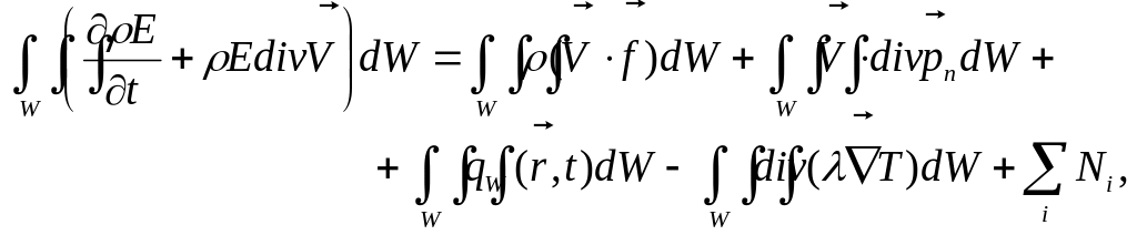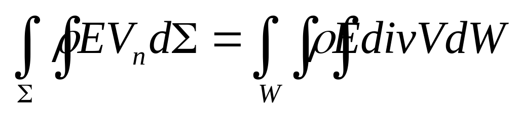 Повторяя процедуру перехода к интегралу по объему для закона сохранения энергии имеем: