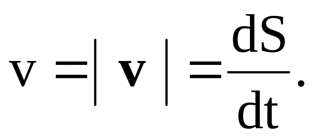 Вектор скорости v направлен по касательной к траектории. Модуль мгновенной скорости равен первой производной пути по времени: