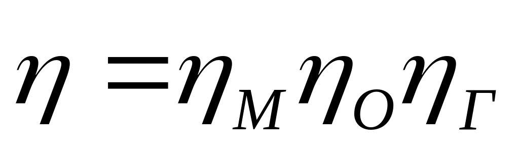 где: М – механический КПД, учитывающий механические потери в гидравлическом механизме (потери, обусловленные трением в подшипниках, сальниках и т.д.); О – объёмные потери (потери, обусловленные утечками жидкости через зазоры между неподвижными и вращающимися частями при наличии разности давлений); Г – гидравлические потери (потери, обусловленные внутренним трением в жидкости, вихреобразованием и отрывом потока от поверхностей проточной части).