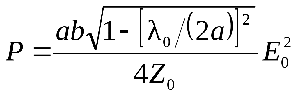 Мощность, переносимая волной типа Н10 в прямоугольном волноводе