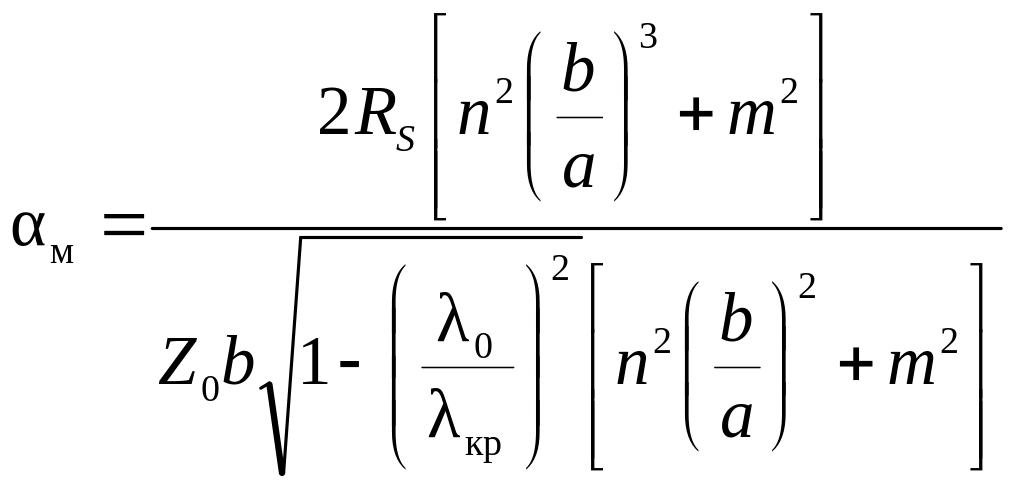 Результирующий коэффициент ослабления волны в волноводе равен сумме коэффициентов ослабления, вызванных потерями в металлических стенках и в диэлектрике: