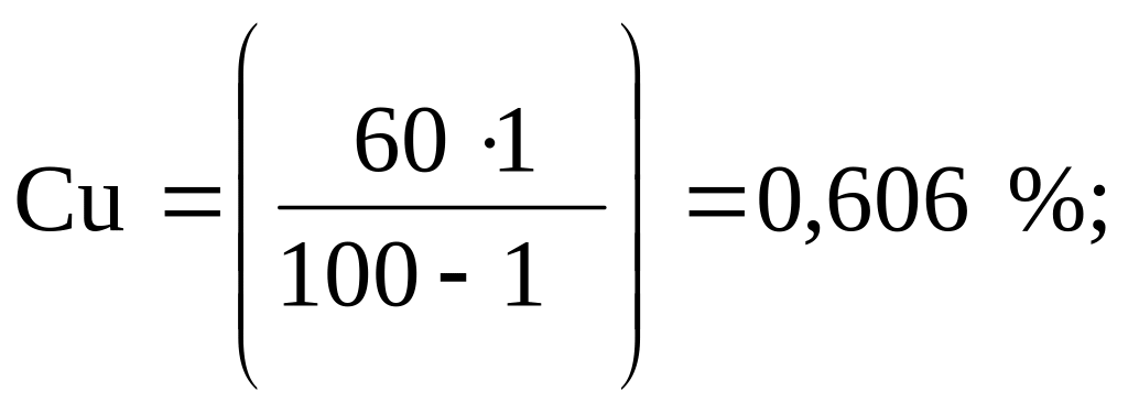 Расчет начинается с возврата – определением количества компонентов, вносимых возвратом определенного химического состава Cu – 60%, Pb – 2%, Mn – 3%, Zn – 14,5%; 40 кг (40%) возврата внесут следующее количество элементов: