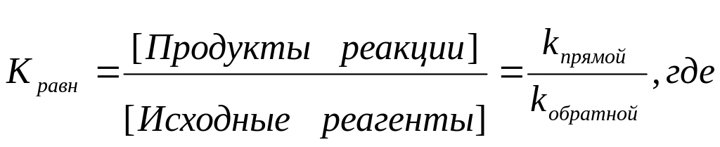 Константа равновесия равна отношению концентрации продуктов реакции к концентрации исходных реагентов.