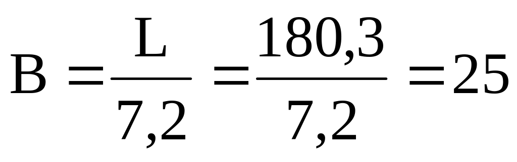 Проверка: D = ρв kв/ч δ LBT = 1,025 х 1,01 х 0,6 х 180,3 х 25 х 9,65 = 27018 т.