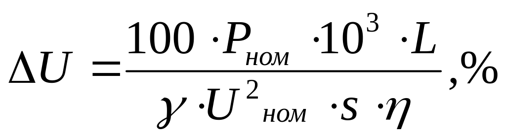 Выбранный кабель проверяем на потерю напряжения по формуле 6.4