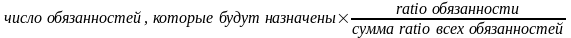 А число назначений для каждой обязанности по-отдельности, которое зависит от ratio (коэффициента), определяется по формуле: